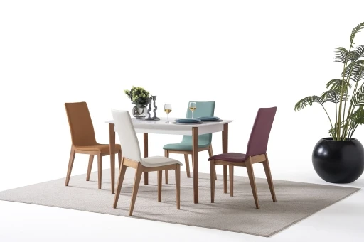 Ana Sayfa Mutfak Masa Sandalye Boston Set Beyaz Ceviz